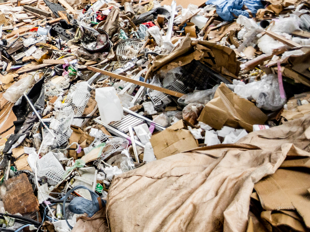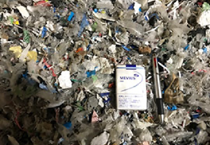 混合廃棄物を種類ごとに仕分ける作業を行ないます。人手のかかる困難な工程ですが、選別作業での精度の良し悪しが再利用率に大きく影響を与えます。