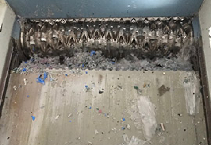 選別後の紙くず、プラスチック、木くずを強力なモーターで破砕します。