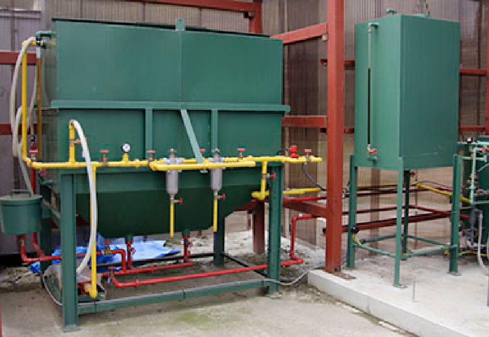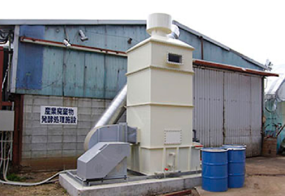 発酵時に発生するアンモニアガスと汚水を無害化し、肥料に還元する装置を設置しています。
