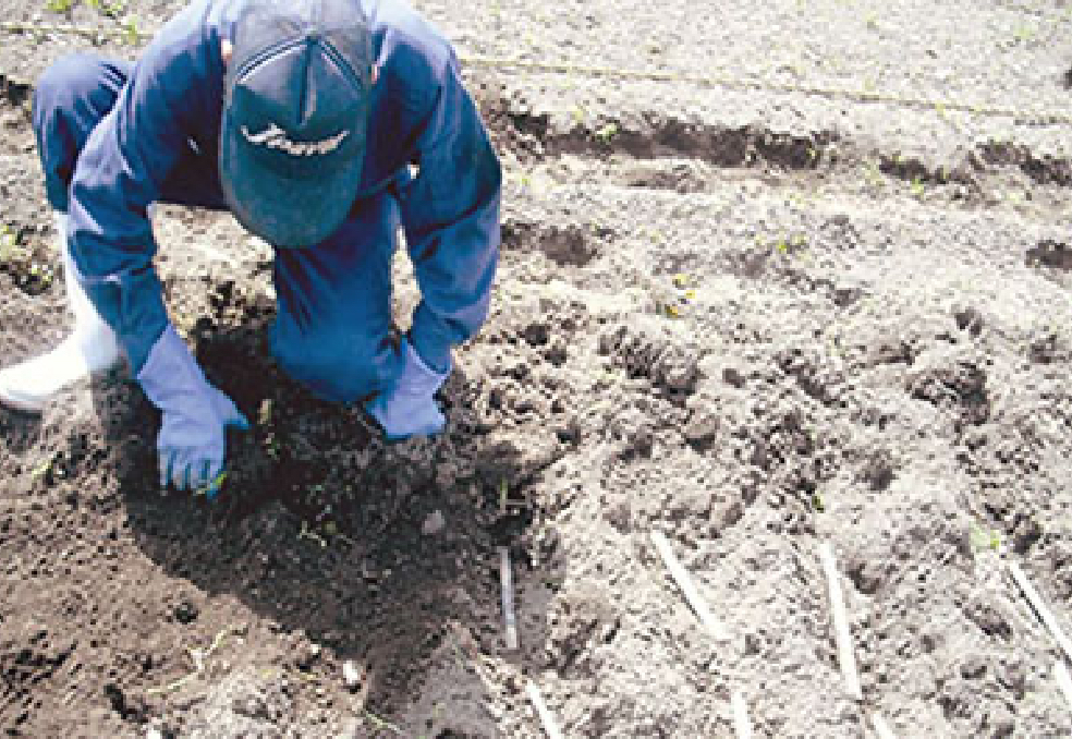 さとうきびは3月に作付けを行ないます。発酵施設で作られた堆肥を施肥していきます。